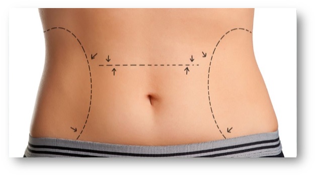 • Lipoabdominoplastia: Es la realización conjunta de lipoescultura del contorno corporal, junto a una abdominoplastia para reconstrucción del abdomen y del ombligo por flacidez cutánea importante, utilizando la técnica de Lipoabdominoplastia de Saldanha.